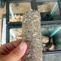 Kemudian, cacahan sampah tersebut diberi tepung tapioka dan dicampur ramuan semacam zat adiktif seperti serbuk pakan ikan. Setelah dimasukkan ke dalam alat lainnya jadilah briket.