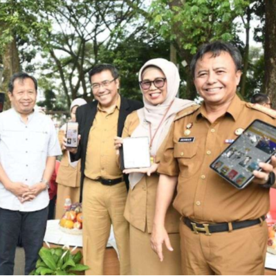 Sekretaris Daerah Provinsi Jawa Barat Herman Suryatman bersama Kepala Dinas Perpustakaan dan Kearsipan Daerah (Dispusipda) Jabar Kim Agung  meluncurkan platform ASIIK, Anjungan Literasi Elektronik di Lapangan Gasibu, Kota Bandung, Senin (10/6/2024).