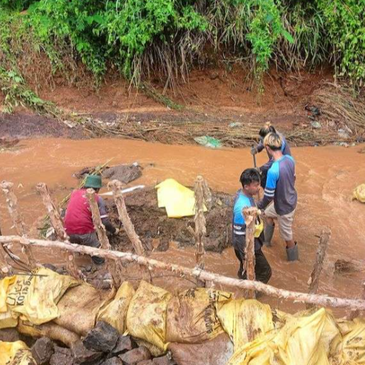 Pelindung tebing sungai yang terbuat dari anyaman baja dan diisi bebatuan dinilai efektif menahan longsoran ketika terjadi luapan sungai.