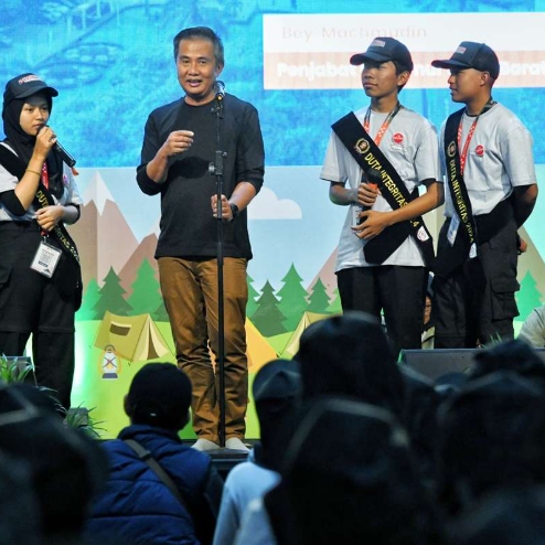 Penjabat Gubernur Bey Machmudin melantik 272 Duta Integritas Jawa Barat pada West Java Youth Camp 2024 dalam rangka Hari Antikorupsi Sedunia di Ranca Upas, Kecamatan Ciwidey, Kabupaten Bandung, Sabtu (30/11/2024).