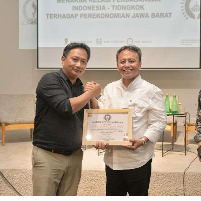 Sekretaris Daerah Provinsi Jawa Barat Herman Suryatman menghadiri acara dialog publik bersama komunitas Bandung Geopolitik Studies dengan tema “Menakar Relasi Perdagangan Indonesia-Tiongkok terhadap Perekonomian Jawa Barat”, di Hafa Warehouse, Kota Bandung, Rabu (31/7/2024) sore.