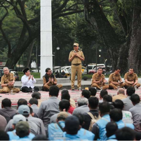 Pj Wali Kota Bandung A. Koswara mengapresiasi kepada para petugas penyapu jalan dan pengangkut sampah dari DLH Kota Bandung.